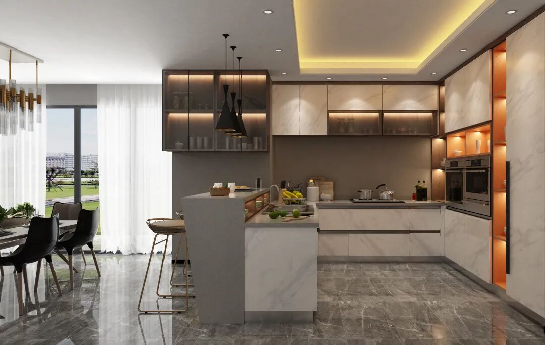 极致绚丽的轻快,并不容易被驾驭,与爵士白相衬,才彰显出高贵气派的空间格调。
